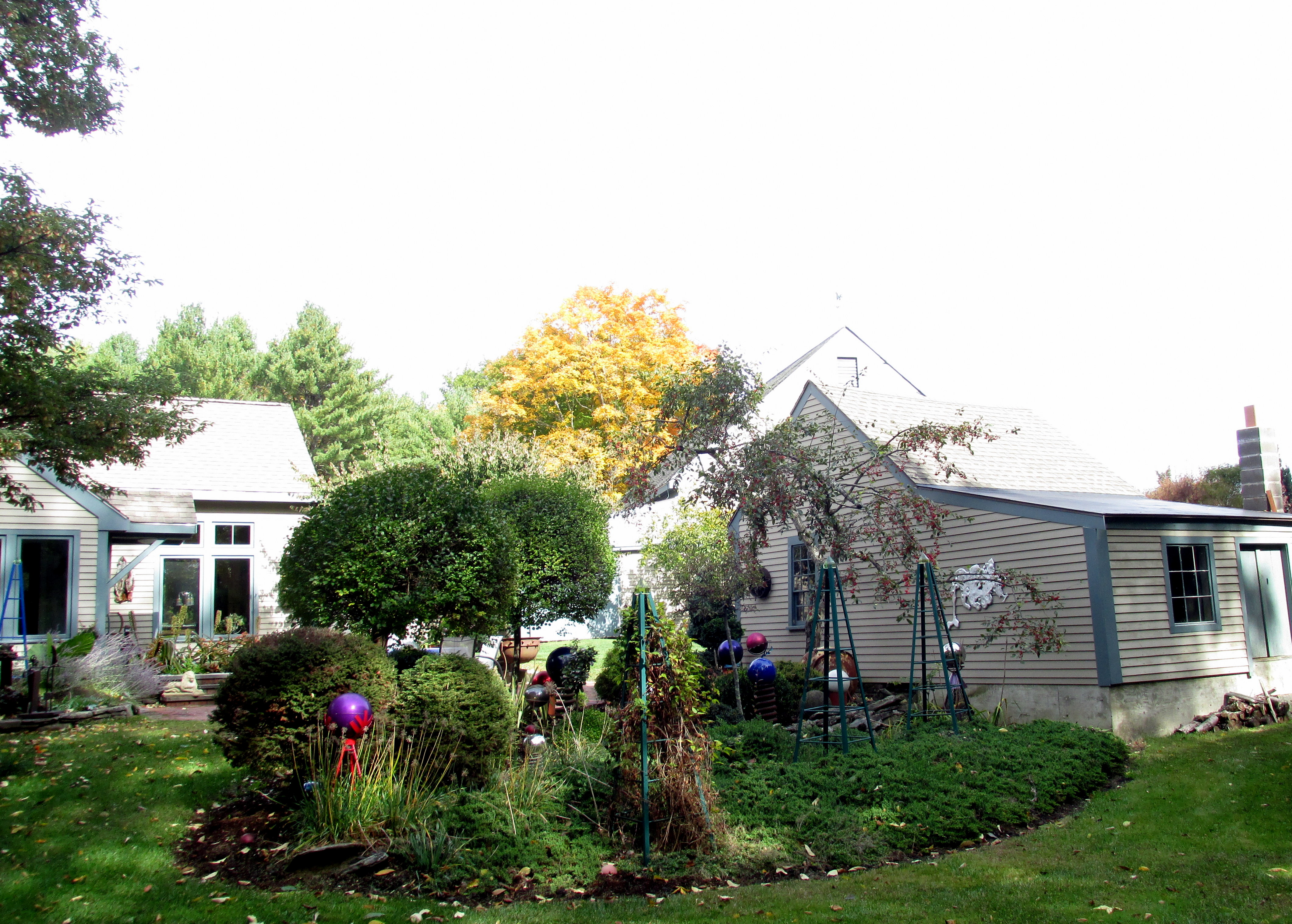 Today, it’s Bedrock Gardens in Lee, NH! I’ve posted photos before of this sculpture garden — “an oasis of art, horticulture, and inspiration” — but the pics that follow were taken just last weekend, the last open garden weekend of the season at this private whimsical showcase. Their website mottos include “Take a journey,” “Beauty in details,” and “The more you look, the more you see;” and a walk through the gardens is a journey of discovery and delight in small elements and positioning: juxtapositions of plants, amusing and unexpected sculpture materials, sculptures in surprising places (see the head in the Wiggle Waggle), intentional and ad-hoc pairings and contrasts.